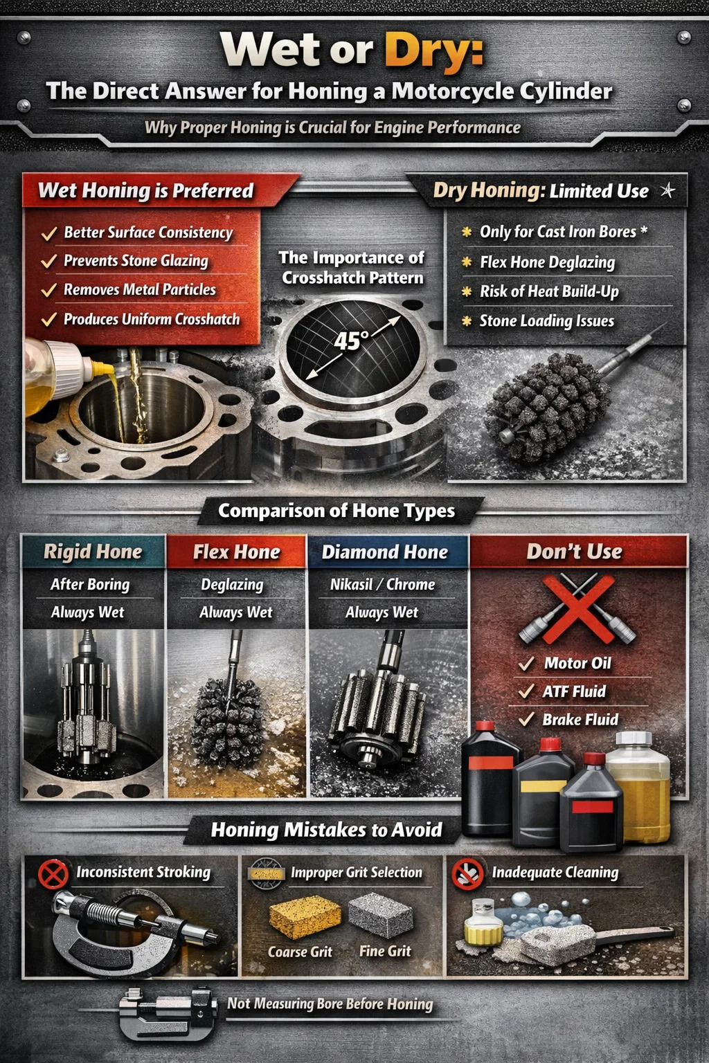 সাধারণ অনারিং ভুল যা মোটরসাইকেল সিলিন্ডারের বোর নষ্ট করে