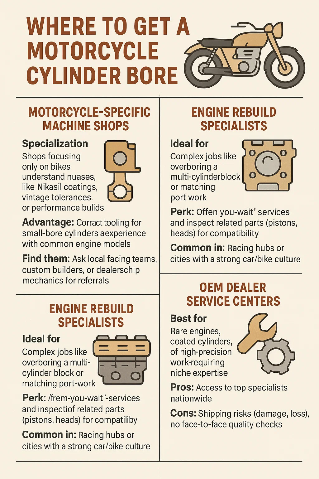 এখানে একটি পেতে যেখানে মোটর সাইকেল সিলিন্ডার বিরক্ত, সঠিক পরিষেবা নির্বাচন করার জন্য মূল বিবেচনার সাথে: