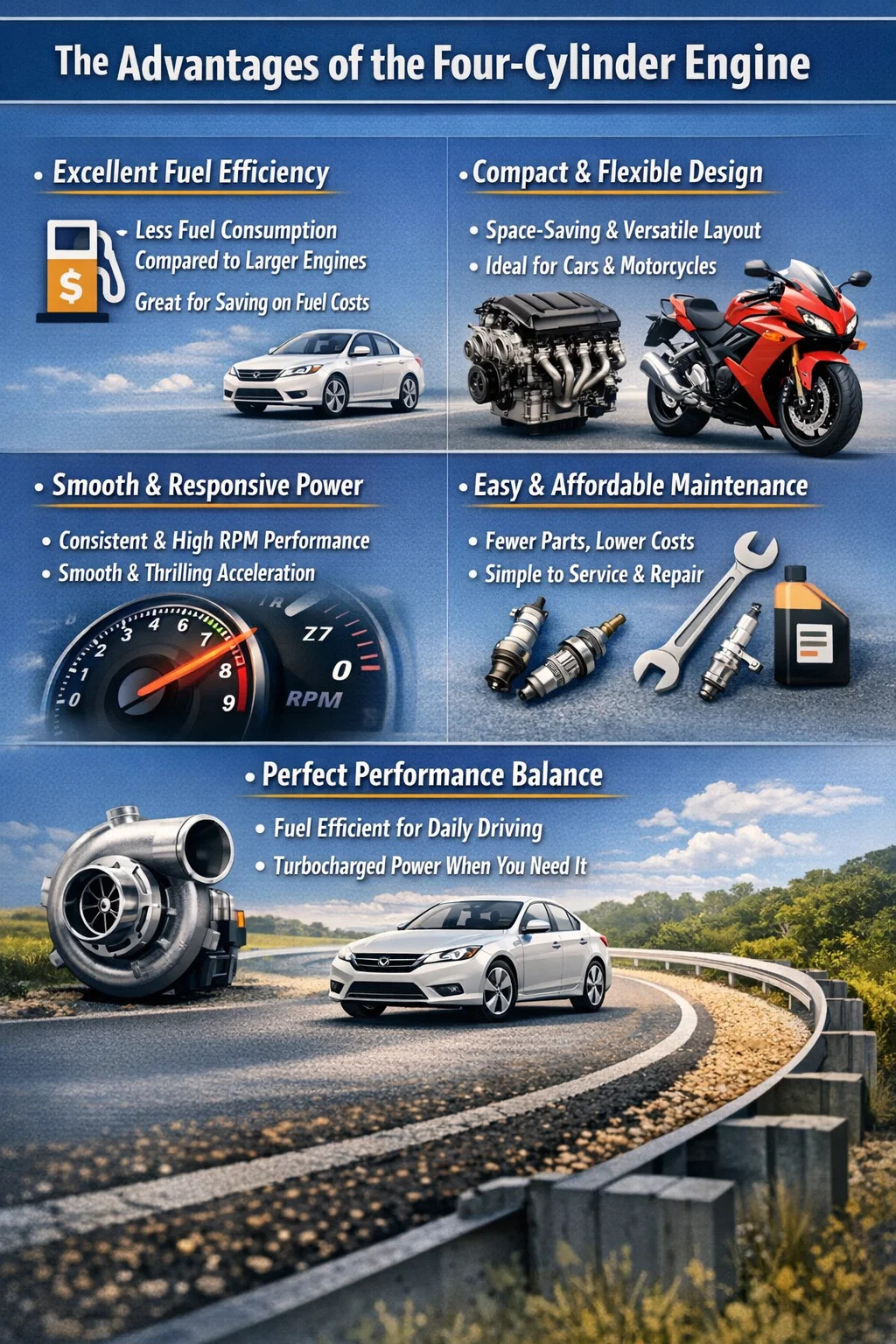 চার-সিলিন্ডার ইঞ্জিন এত জনপ্রিয় হওয়ার কয়েকটি মূল কারণ এখানে রয়েছে: